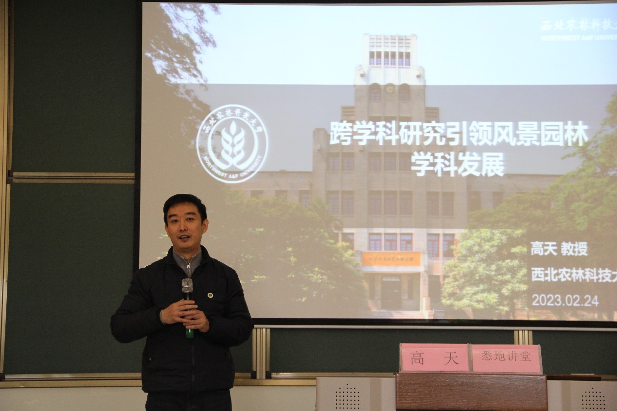 2023年2月24日下午,西北农林科技大学风景园林艺术学院副院长、教授、博士生导师高天做客欧美性爱 悉地学术讲堂第五十一讲,主讲了题为“跨学科研究引领风景园林学科发展”的讲座。欧美性爱 园林系教授、博士生导师、国务院特殊津贴获得者刘滨谊主持此次讲座,风景园林专业近百名本、硕师生参加。