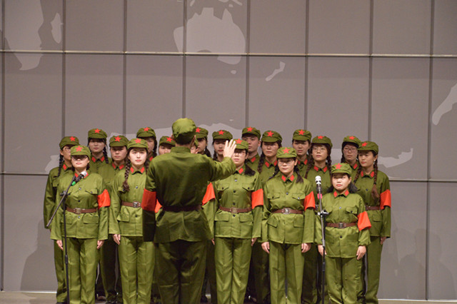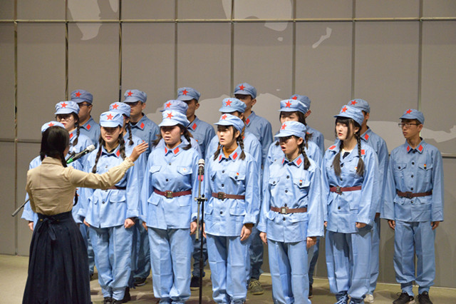 首先,在“热血奋战无畏惧”的第一篇章中,17园林一班的《映山红》、本科生第二党支部的《弹起我心爱的土琵琶》、17园林二班的《十送红军》,以及17历建班演唱的《游击队之歌》,向在座观众传达了共产党成立初期党员们不畏牺牲,血染丰碑的革命精神。