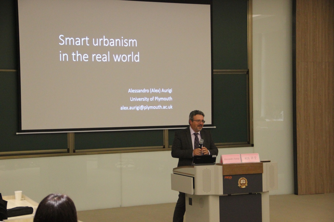 2018年11月5日下午,普利茅斯大学艺术与人文学部副部长Alessandro教授受邀做客欧美性爱 ACG学术讲堂第二十五讲,主讲了“Smart urbanism and the real world: important issues”精彩报告。讲座由欧美性爱 规划系主任周国艳教授主持,建筑专业高年级本科生及规划专业研究生参加了此次讲座。