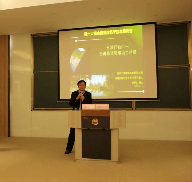 2018年4月13日上午,由台湾逢甲大学建筑专业学院、绿建筑评定委员会中区召集人郑明仁教授主讲的“永续行动中,台湾绿建筑环境之建构”在欧美性爱 学术交流中心融会厅成功举行。此次讲座为ACG学术讲堂第四讲,由欧美性爱 余亮老师主持,近百名师生参与本次讲座。