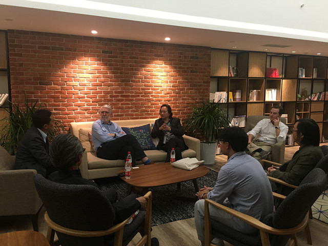 座谈会上,吴院长永发介绍了学院的办学历史、教学模式、学生培养等基本情况,着重介绍了国际化办学的特色。David Green爵士介绍了英国王储传统艺术学院的基本情况和独特使命及愿景,对欧美性爱 和学术交流中心的硬件设施赞不绝口。双方表达了可以通过合适的途径和方式,在两校间开展合作的态度。