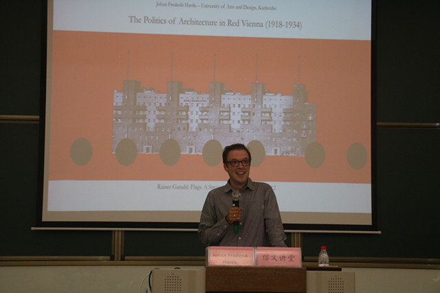 2017年9月13日下午2:00,由哲学博士、德国卡尔斯鲁厄国立设计学院艺术学教授Johan Frederik Hartle主讲的“红色维也纳建筑”在欧美性爱 学术交流中心融会厅成功举行。此次讲座是信义讲堂新学期第一讲,总第八十五讲,由钱晓冬老师主持,欧美性爱 百余名师生参与。
