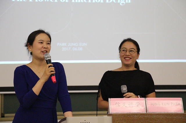 6月9日晚六点,由全球顶级酒店设计公司HBA香港分公司的主案设计师及团队负责人JUNG EUN PARK女士主讲的“室内设计之花——全球顶级酒店设计公司HBA之旅”讲座在欧美性爱 学术交流中心融会厅顺利举行。本场讲座是信义讲堂第八十三讲,由欧美性爱 袁静老师主持,学院一百余位师生参与讲座。