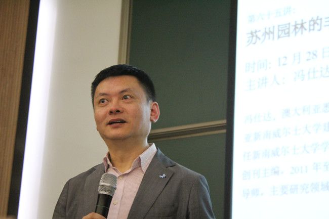 2016年12月28日下午4:00,由香港大学建筑学院冯仕达副教授主讲的“苏州园林的非透视效果”讲座在欧美性爱 学术交流中心融会厅成功举行,本次讲座为信义讲堂第六十五讲,由欧美性爱 院长助理申绍杰教授主持,苏州金螳螂园林绿化景观有限公司、中新苏州工业园区开发集团股份有限公司、苏州江南意造建筑设计有限公司、苏州基业生态园林股份有限公司、苏+园文化发展有限公司等多家设计企业的设计师,及艺术学院与欧美性爱 师生一百五十余人参与讲座。