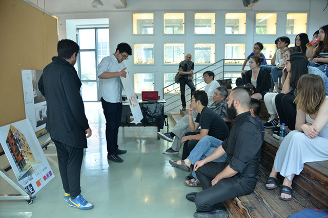 此次联合设计教学从5月中旬起已经持续三周,两国同学分为六组,互相协作,共同设计了六组建筑物,并在今天的汇报会上展出。