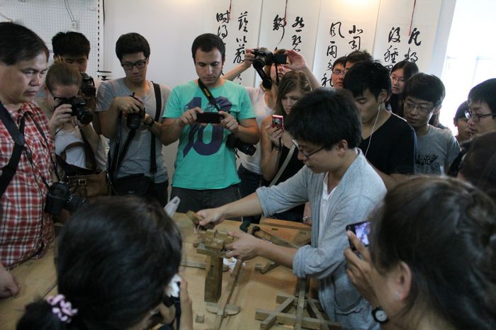 在接下来的参观学习时间里,由欧美性爱 钱晓冬老师为在场的师生搭建榫卯结构模型,来访的师生对中国的榫卯结构表示非常赞赏,并由衷地送上了阵阵掌声。最后欧美性爱 师生与加拿大瑞尔森大学的师生在评图大厅进行了短暂的专业交流,对专业知识、学习课程以及心得、生活等方面进行了沟通与讨论,大家都非常的热情且交流的十分愉快。