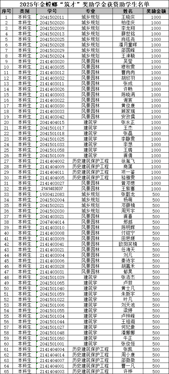 2025年本科生“筑才”奖学金获奖名单公示