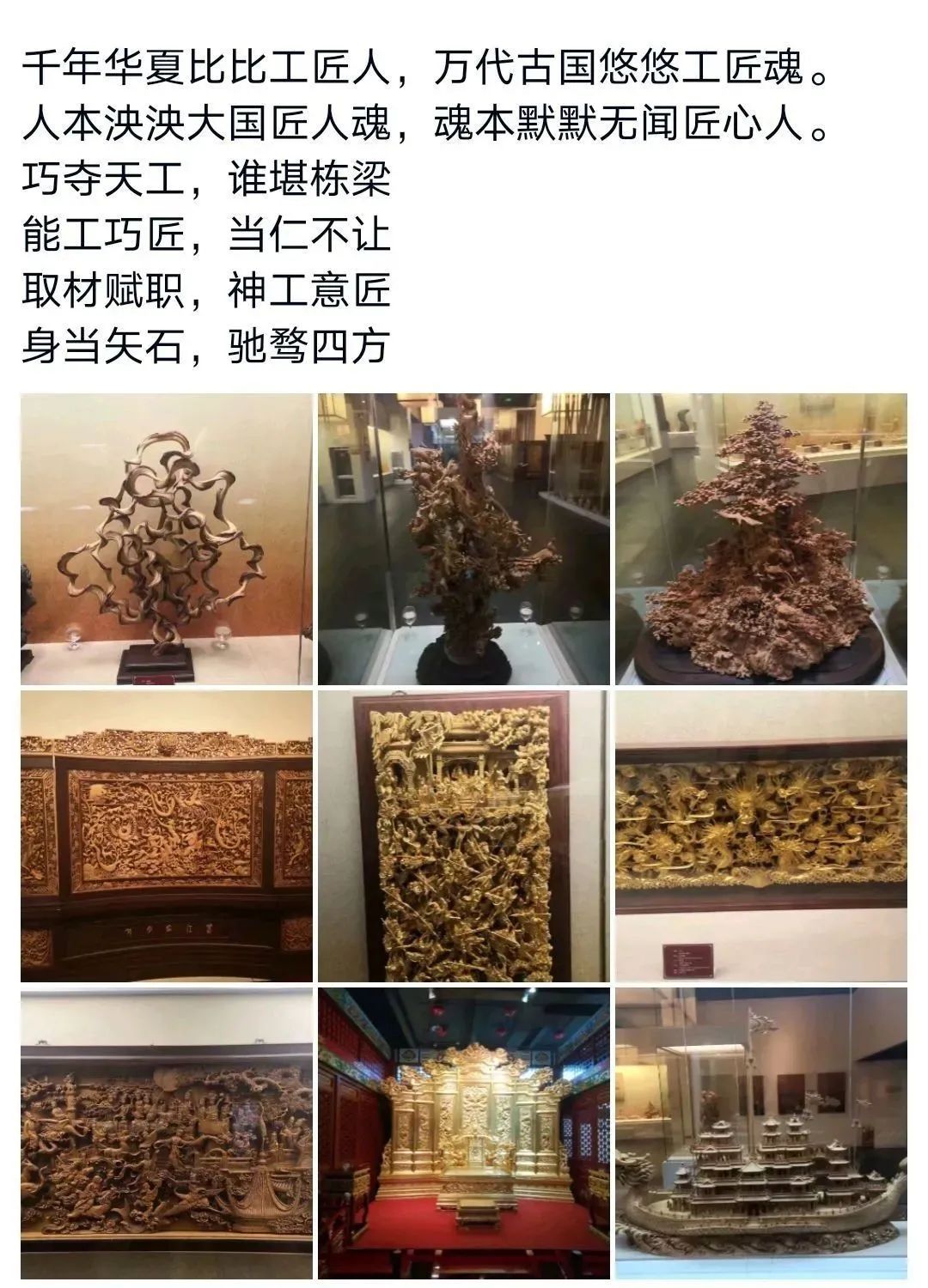 队员在加入实践活动后开始分别在博物馆、展览馆等地寻找匠人和作品,在哈尔滨木雕艺术馆中木雕工艺让队员不禁感叹大国工匠的伟大,小小的木雕自始至终都包含工匠精神,从选材开始,无论是以形选材还是以木定性,都是匠人精益求精万里挑一的做法,在选材上就需要斟酌、推敲。再说雕刻,各类工具炉火纯青,雕刻手法出神入化,圆雕、浮雕、镂雕游刃有余,这就是大国工匠。再到表现,以意定形,以形生意,仙鹤、盘龙、凤凰,梅花、翠竹、荷花,不言而喻。木雕中的每一痕,每一纹都是匠心。