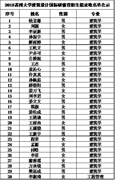 建筑设计国际研修营招生拟录取名单公示