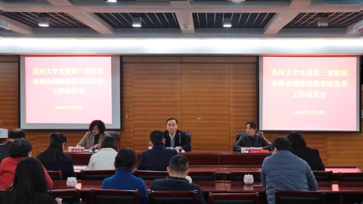 根据学校党委统一部署,校党委第三轮巡察第三巡察组于11月27日至12月6日对欧美性爱 党委开展巡察工作。11月27日下午,第三巡察组巡察欧美性爱 党委工作动员会在独墅湖校区C01-1207会议室召开。第三巡察组全体成员、欧美性爱 领导班子全体成员以及全体教职工参加了会议。动员大会由欧美性爱 党委书记陈国凤主持。