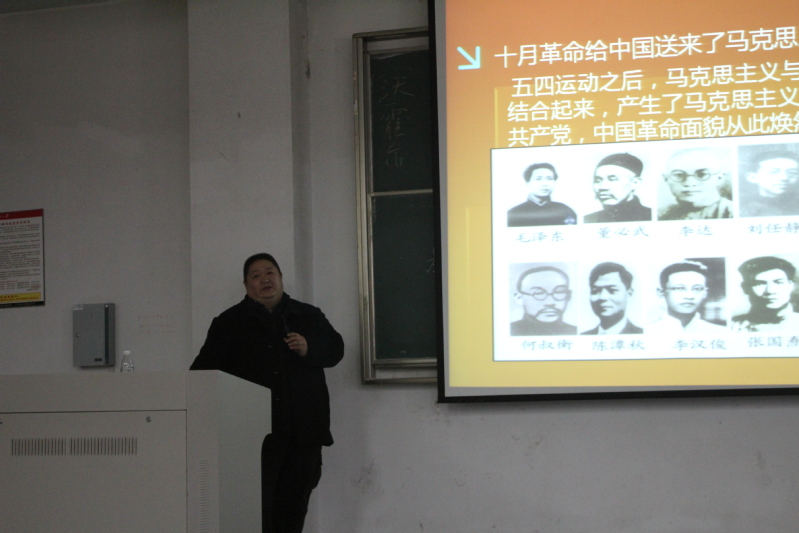 讲话结束后,马克思主义学院顾宏松老师,为党校学员讲授培训班第一讲:“不忘初心,砥砺前行——从党的一大到十九大”。顾老师用风趣幽默的方式,带领学员回顾了党的奋斗发展史,随后以三点学习提纲为要,开始了对主题的讲解。一是党章概述,顾老师讲解了党章的重要性和在党务工作中的指导意义;二是不忘初心——历届党章回顾,顾老师从党史入手,以历届党代会为节点,讲述了党章的发展过程,并指出了坚定初心的重要性,加深了学员对党章的认识;三是砥砺前行——解读新党章,顾老师针对十九大的内容,结合新时代中国特色社会主义思想,对新党章进行了解读,强调了中国特色社会主义在党章中的地位,强调要坚定贯彻党的基本理论、基本路线、基本方针,并结合实际文化传播发展中的要求,展望未来、寄以期望。