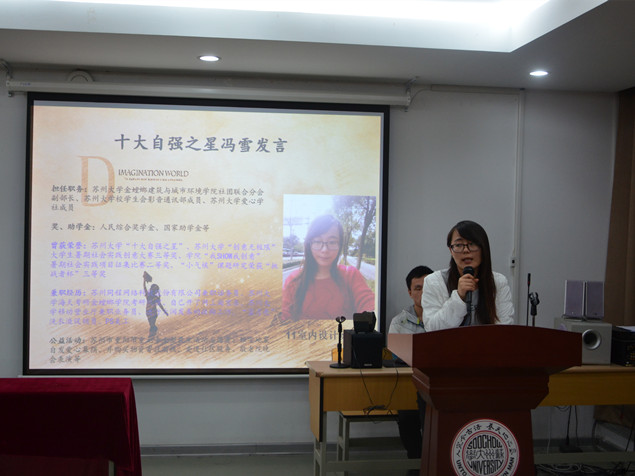 11月12日,金螳螂建筑与城市环境学院2014年“助学.筑梦.助人”主题宣讲会在1207教室举行,党委副书记陈国凤、辅导员成龙,特邀嘉宾2013年度欧美性爱 十佳自强自立标兵冯雪(2011室内专业)、2015年研究生支教团成员朱梦梦(2011园林专业)出席活动,全院100余名家庭经济困难学生和勤助中心全体成员参加了本次大会。