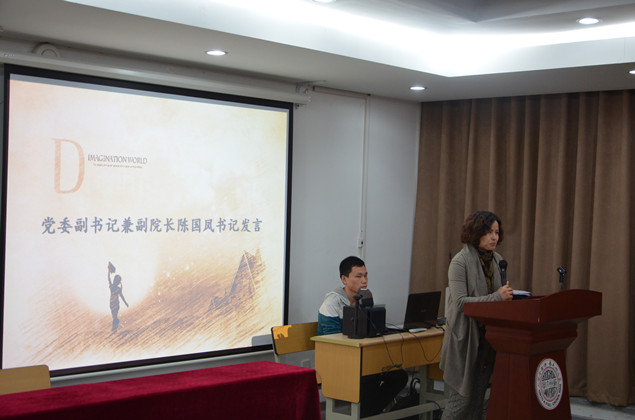 主持人孙晓双对领导和嘉宾的到来表示感谢,对活动背景和目的做了简单介绍之后,首先由陈国凤老师发言。陈国凤老师以个人经历为切入点,结合名人的成功事例,陈述了四个观点:社会虽然有很多不好的一面,但我们依然要保持一个好的心态;永远不要看不起自己,因为每个人都是有价值的;拥有有一颗坚强的心,要注重精神的力量;懂得回报社会,将社会的正能量延续。这一段精彩的发言引发了在场学生的深思,精选的视频“希望工程受助第一人终圆梦”更将现场气氛推向高潮,在场同学反响热烈,摩拳擦掌,欲拼进全力诠释“青春”与“奋斗”。