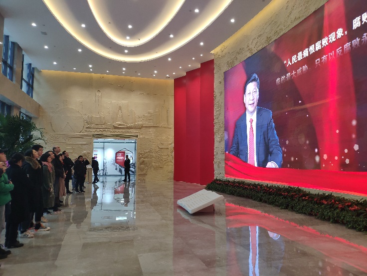 “人民最痛恨腐败行为,腐败是我们党面临的最大威胁……”在习近平总书记铿锵有力的讲话中,师生党员们开始了正面党性教育与反面警示教育相结合的参观与教育之旅。