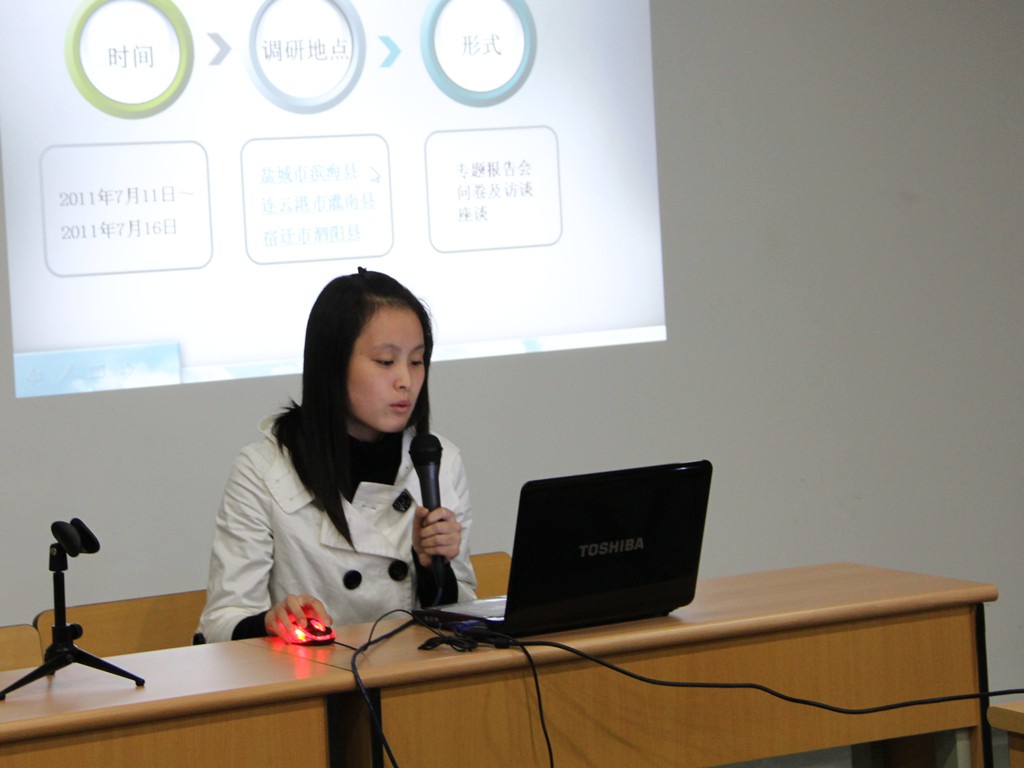 最后,文学院“阳光之旅——与延安学生心连心”社会实践小组就2011年暑期奔赴延安进行的社会服务作交流报告。主讲人指出:举办该活动的目的,一是为了庆祝建党九十周年,二是为贫困家庭的孩子送去一份温暖。他们为延长中学的孩子捐赠书籍与衣服,希望书籍能给他们并不丰富的课余生活增添色彩,并鼓励孩子们树立坚定地目标,尽最大的努力考上大学,走出封闭的大山。最后,她强调,社会服务是为了尽自己所能去帮助那些需要帮助的人,而不只是单纯的完成任务,而我们每个人都应该有这样的社会责任感。最后,交流会在热烈的掌声中取得圆满成功。