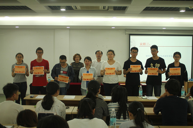 首先,徐娜老师代表院团委介绍了2017年暑期社会实践筹备情况。接着,院党委副书记、副院长陈国凤老师宣读了校级重点、院级重点团队名单,与会的领导老师为重点团队代表颁发荣誉证书并合影留念。暑期社会实践团队代表吴子豪同学上台发言,他代表全体参加社会实践的学生表达了积极开展暑期社会实践的热情与自信,他表示:“我们会继承以往的优秀传统,发扬出自己的闪光之处,争取把这项活动圆满地完成,并从中真真正正地学到知识与经验,获得自我的提升。”