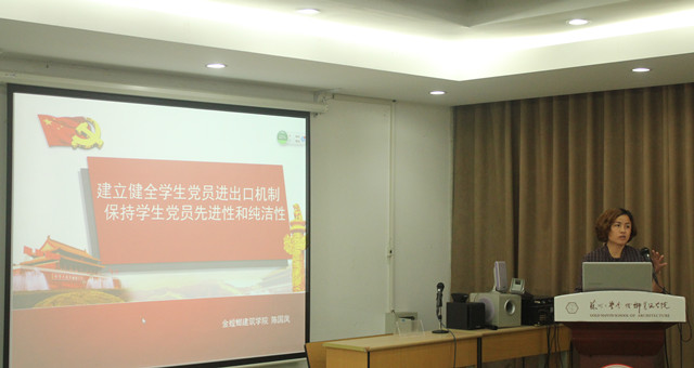 典礼结束后,院党委副书记陈国凤老师以“完善党员进出口机制”为主题为培训班学员上了最后一次党课,向全体学员提出了明确的要求,也希望同学们不要辜负党的期望,牢记党的宗旨,发扬党的传统,努力学习,做一名合格的入党积极分子和学生党员。