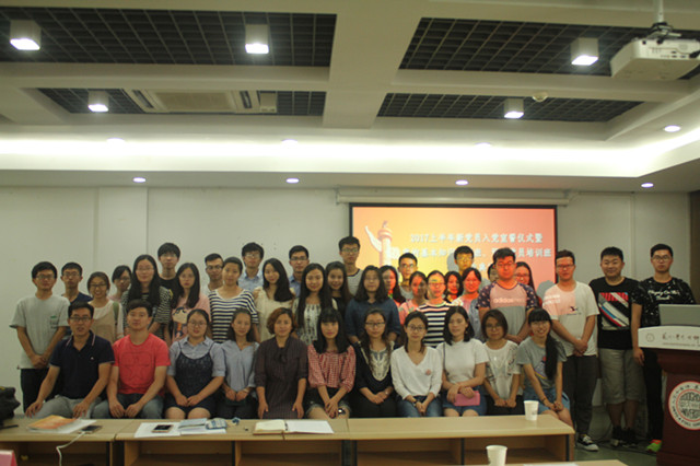2017上半年新党员宣誓仪式暨春季党校结业典礼在C01-1207会议室顺利举行。学院党委书记黄志斌,副书记陈国凤,党校指导老师、本科生第二党支部书记成龙出席活动,院党校工作人员、2017上半年新入党党员、第57期党的基本知识培训班学员、第36期预备党员培训班学员等参加活动。