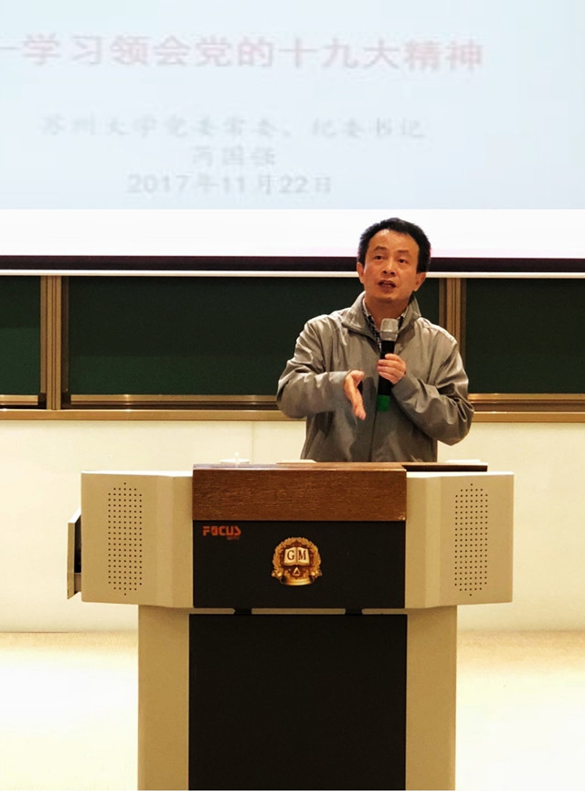芮国强书记强调,学习贯彻党的十九大精神,一定要在学懂、弄通、做实上下功夫,推动党的十九大精神落地生根。他从党的十九大报告的主题、结构、特色以及起草过程诠释了党的十九大报告是一篇闪耀着马克思主义真理光芒的纲领性文献。十八大以来五年间所取得的辉煌成就把中国特色社会主义带进了新时代。从我国社会主要矛盾已经转化为人民日益增长的美好生活需要和不平衡不充分的发展之间的矛盾诠释了新时代党的历史使命等。希望全体教职员工要以习近平总书记 “人民至上”的崇高境界、强烈的“责任担当”情怀、“改革创新”的魄力和高度自信,结合欧美性爱