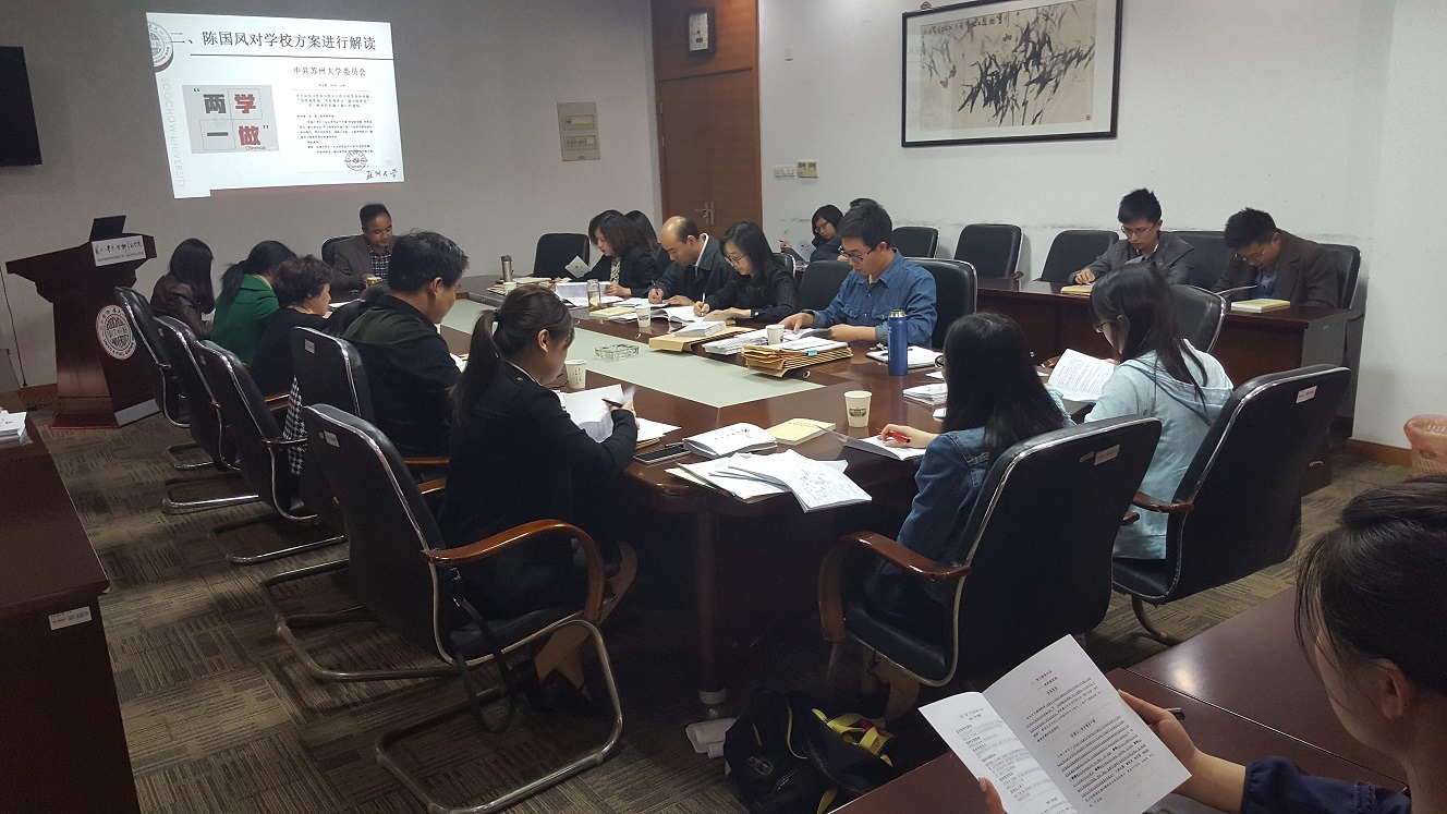 查佐明首先作“两学一做”动员讲话。他传达了中央和学校“两学一做”学习教育的主要精神,结合学院实际讲了四点意见:一是深刻领会“两学一做”学习教育的重大意义。“两学一做”学习教育对深化思想政治建设具有重要推动作用,对落实全面从严治党要求具有重要基础作用,对贯彻落实党中央重大战略部署具有重要保证作用。二是要准确把握“两学一做”学习教育的目标任务。要明确学的要求、做的标准和解决的问题。三是努力掌握“两学一做”学习教育的开展方法。要坚持日常学习制度,联系实际搭建平台,注意分层分类推进,注重发挥典型作用。四是切实抓好“两学一做”学习教育的责任落实,要认真履行责任、坚持领导带头、加强具体指导、推动中心工作。院党委副书记陈国凤对学校方案进行了详细解读和重点部署,并就相关时间节点和工作任务进行了布置。
