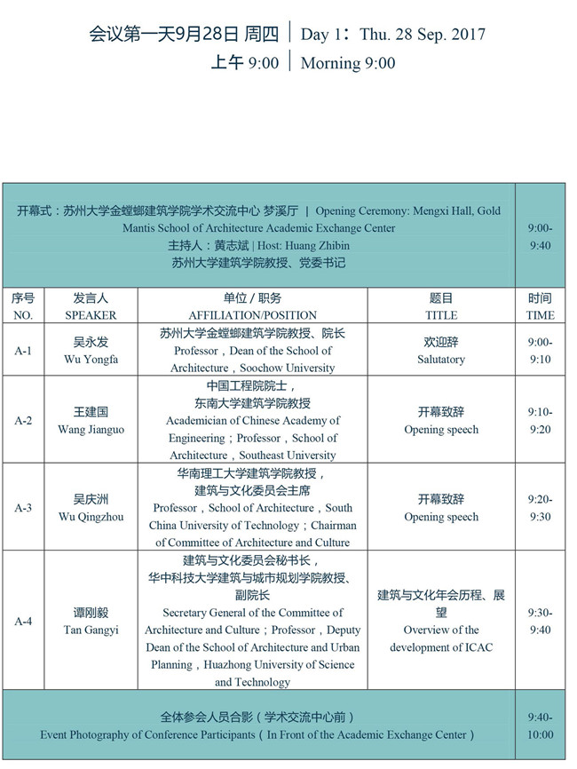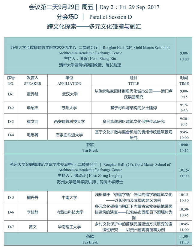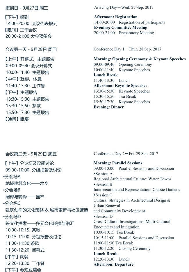 2017第十六次建筑与文化国际学术讨论会会议日程、议程安排