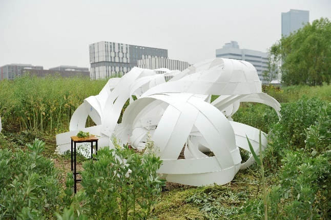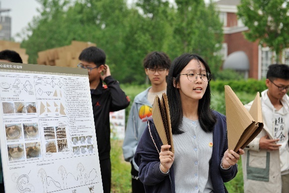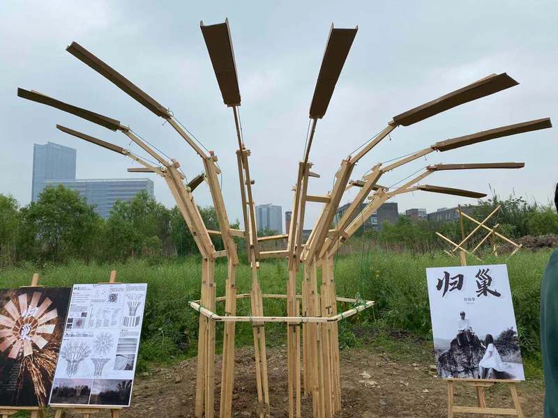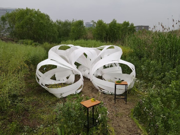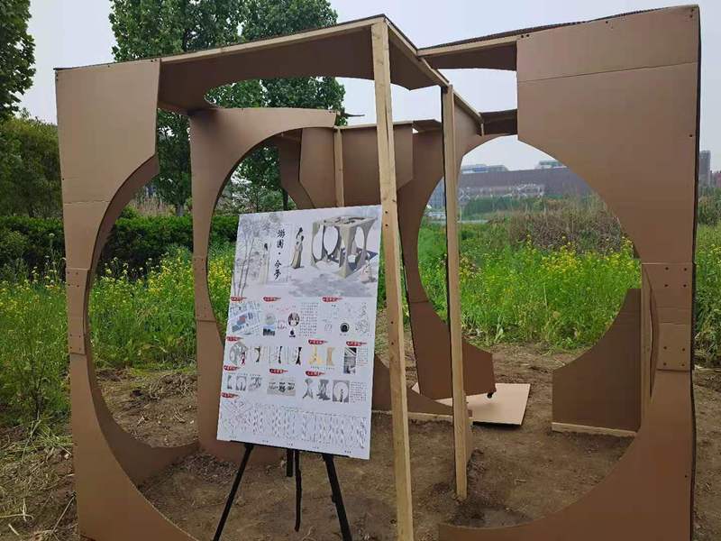 经过同学们精心巧思和指导老师的用心指导,历时六个周,2020级的同学集思巧手,让11个优秀作品从图纸中走出来,呈现在田野上。它们分别是: