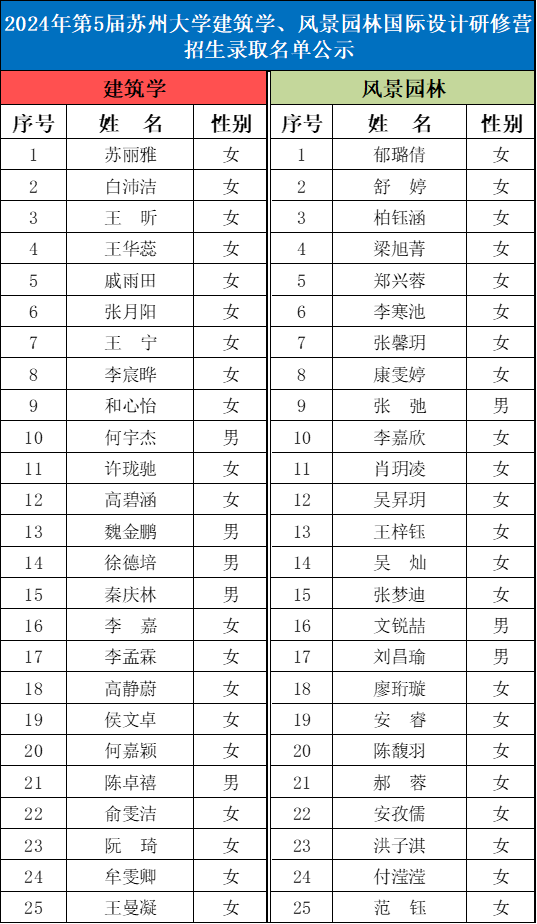 建筑学、风景园林国际设计研修营录取名单公示